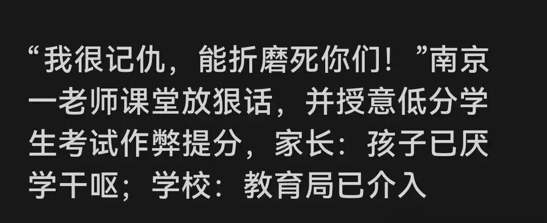 近日,有网友曝南京汇文学校初中部一女老师在课堂上发表侮辱、贬低学生的极端言论,引发关注。
