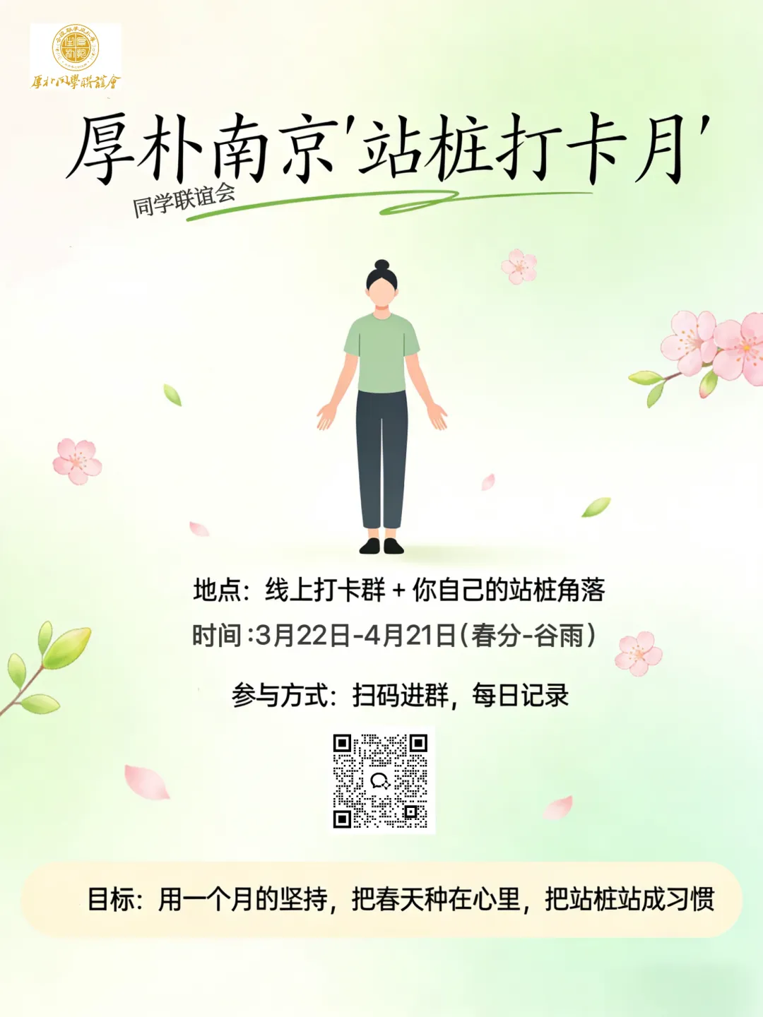 同学联谊会南京分会“站桩打卡月”邀约|用一个月的坚持,把春天种在心里