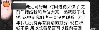 女子结婚时同事随200元,离职4年半后发信息要求返还