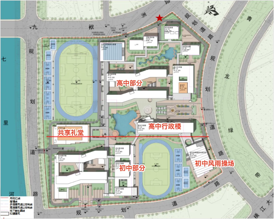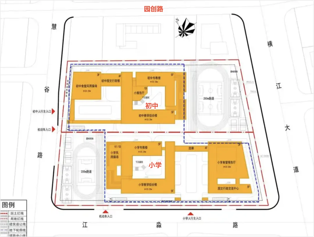 一样,也分为两个部分,北部园创路一侧的是初中,南部江淼路一侧的是小学。