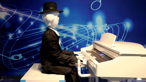 身着西装,头戴礼帽的“钢琴王子”超有范儿。在屏幕上点下一首歌,他会随着节奏和旋律起伏变化演奏旋律,特别投入动情!