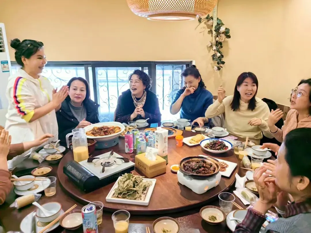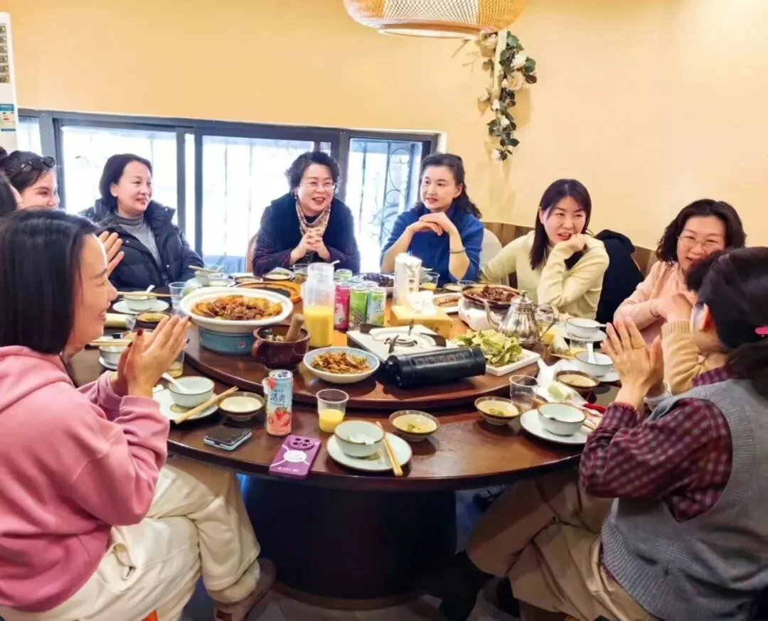 饭店的包间里,笑声比菜先上桌。姐姐们相互认识,一番交谈过后,已像认识多年的好友,互相开着玩笑。