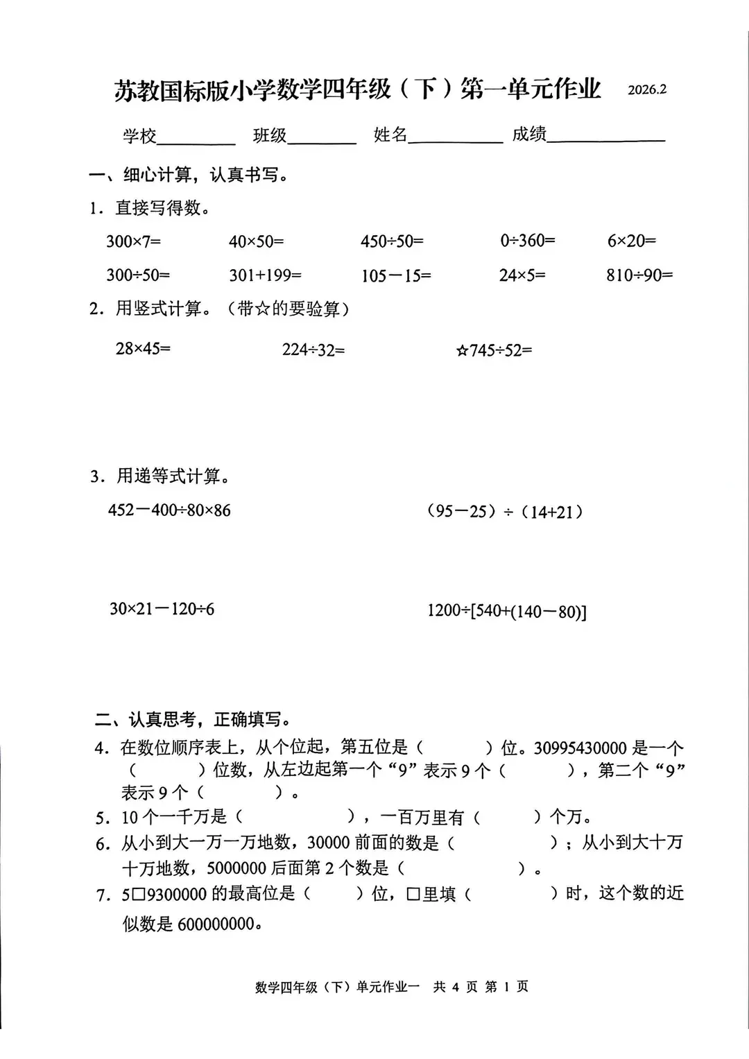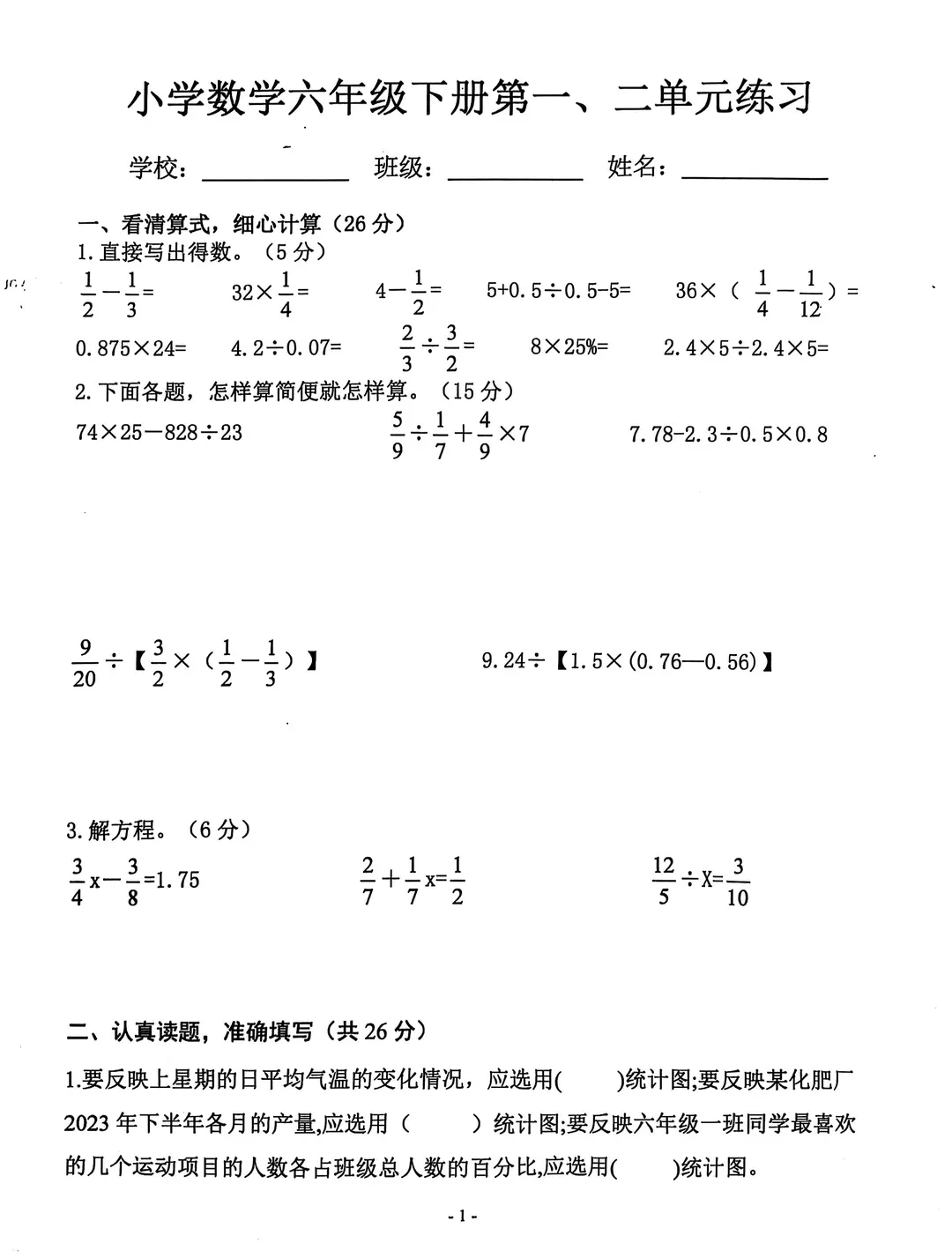 1-6年级习题展示