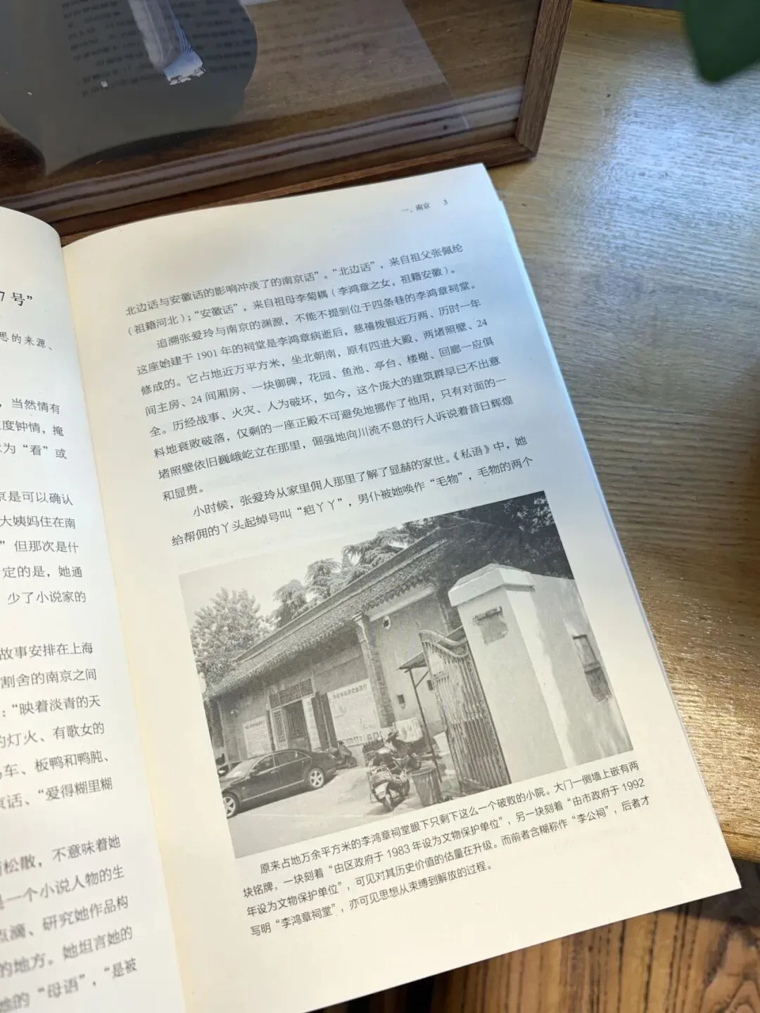 在李鸿章祠堂,他看到御碑、鱼池、亭台,回廊,一堵照壁依旧巍然屹立,“倔强地向川流不息的行人诉说着昔日辉煌和显贵”。在那里,他想到最后一任两江总督张人骏,张爱玲称他为“二大爷”,每次见到她,都要让她背个诗,“他的南京话‘有什么吃哒’,说得很南京,想必张爱玲也是会说的。”