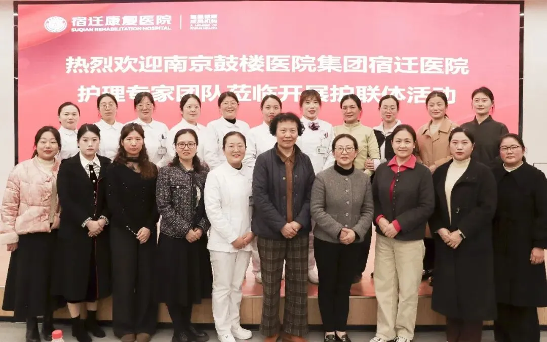 为推动区域护理资源联动共享,提升康复护理专业化水平,3月23日,宿迁市护理学会秘书长陆洋、南京鼓楼医院集团宿迁医院护理部副主任赵春云率专家团队赴宿迁康复医院,开展护联体帮扶交流活动。本次活动聚焦临床疑难病例、科研能力建设及康复指南应用等重点领域,通过专题讲座与现场交流,促进护理管理与专业技术双提升。宿迁康复医院副院长桓雪莱、护理部主任许娣及及各科室护士长、护理骨干参加活动。