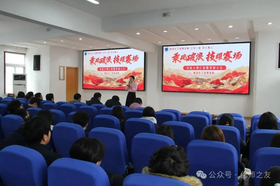 3月19日下午,南京化工技师学院在综合楼三楼报告厅举办2026年校级学生技能竞赛汇报暨表彰大会。本次大会以“青春筑梦技能路,工学融合启新程”为主题,学校领导、全体教师及班主任、获奖选手等参加。