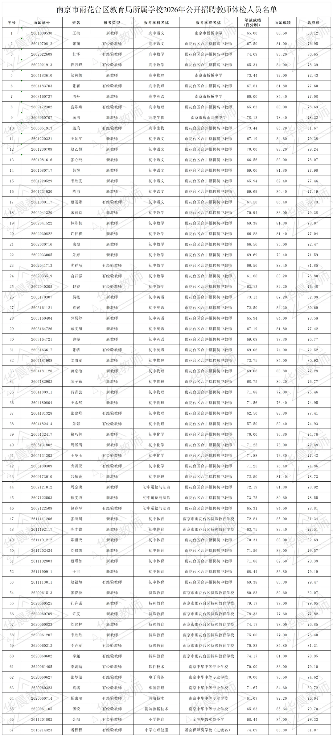南京教师招聘||南京市钟英中学2026年公开招聘新教师进入面试人员名单公示