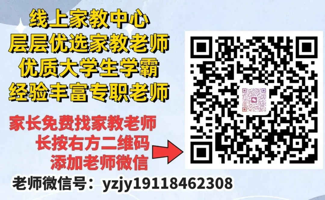 添加下方老师微信,留言:年级 + 科目 + 孩子情况;例:四年级 + 数学 + 做题马虎、高二 + 化学 + 基础薄弱;