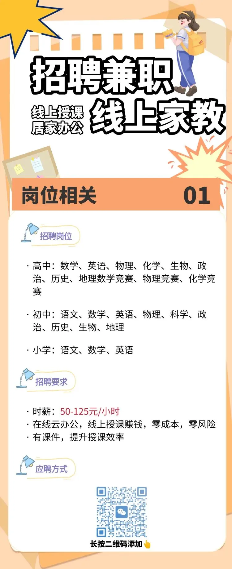南京家长找线上一对一家教老师,性价比高,优秀985、211老师、专职老师可选择,免费试听 | 招聘兼职线上老师!在家工作,网络授课!