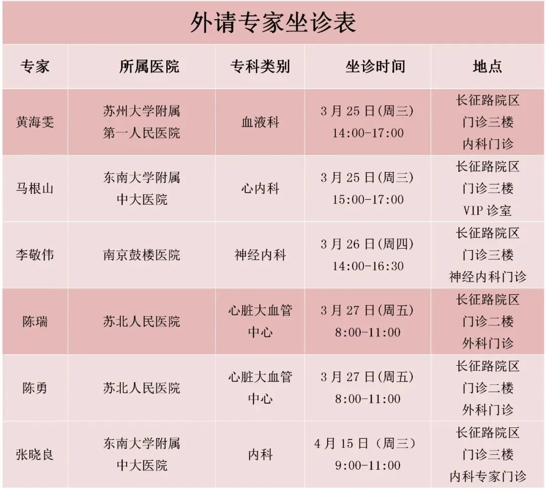 泰兴市人民医院特邀苏北人民医院心脏大血管中心陈瑞及陈勇主任于2025年3月27日(周五)上午来院坐诊。