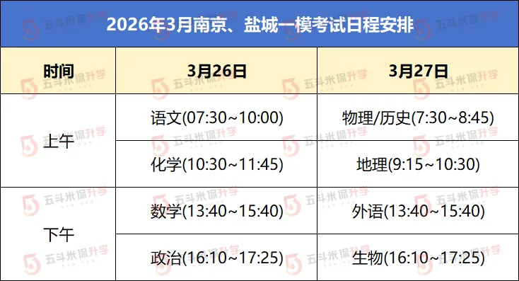 南京2026届高三一模时间确定,3月26日-27日考试,考试范围与高考一致,南京、盐城两个市一起考。