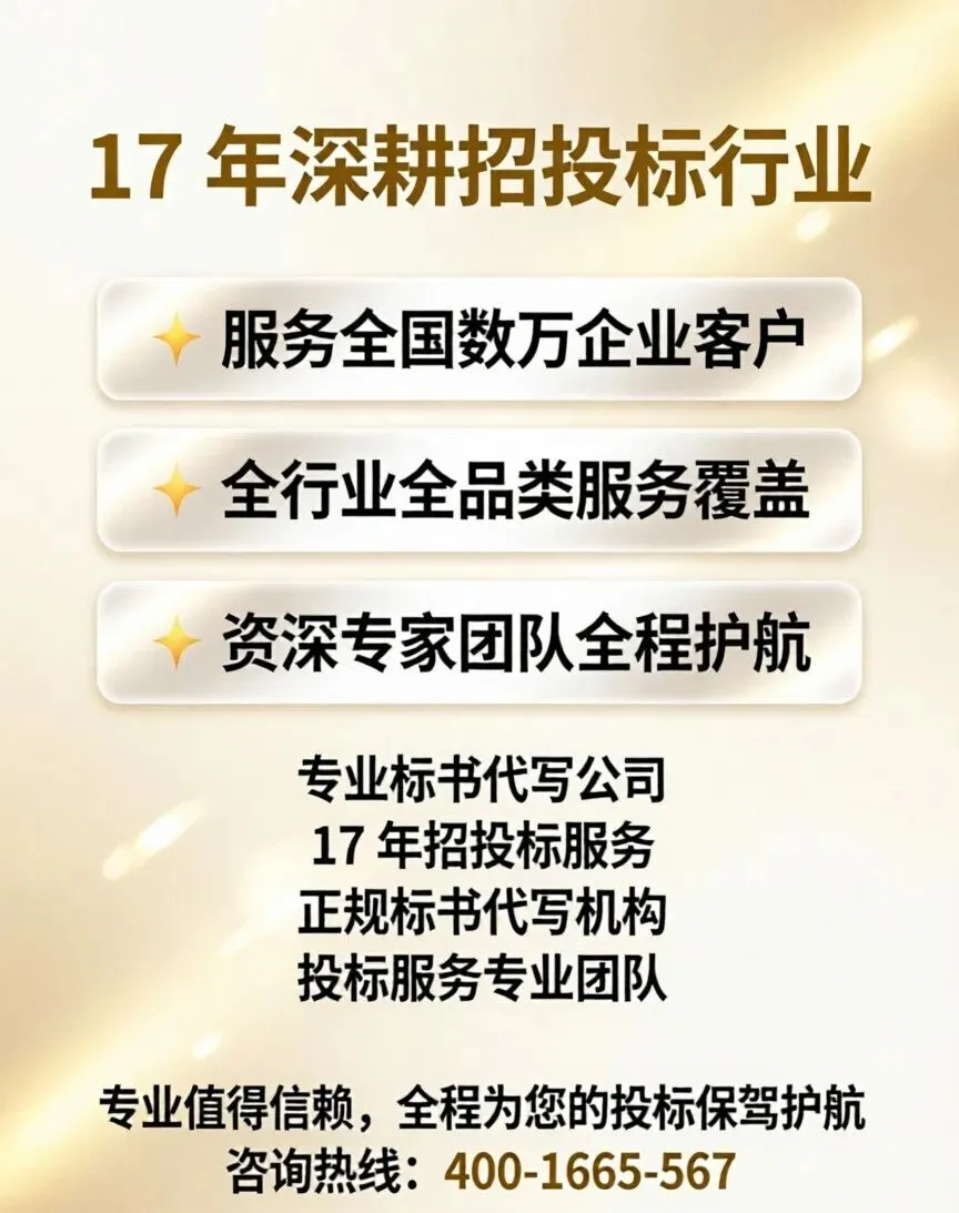深耕招投标行业 17 年的专业服务团队,专为南京企业打造「政府采购标书定制化编制 + 政策全响应」一站式服务,深度适配本地政府采购规则,助力企业优化投标方案,提升投标竞争力。