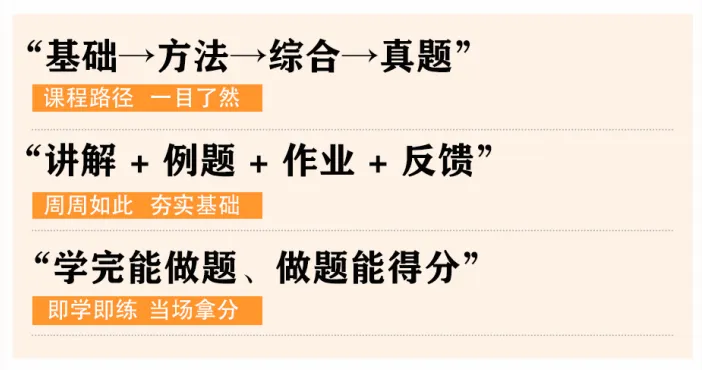 梳理课本查缺补漏,完善知识体系,根据目标院校特点,定制化讲解各类重难点内容,从特殊到一般,总结院校重点、难题和特色题型,做到指哪打哪。