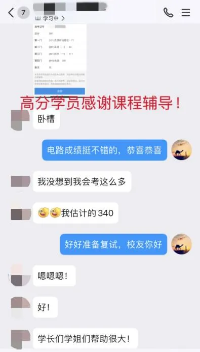 在电气定向集训营中,众多学员在专业课上取得亮眼高分并成功上岸。