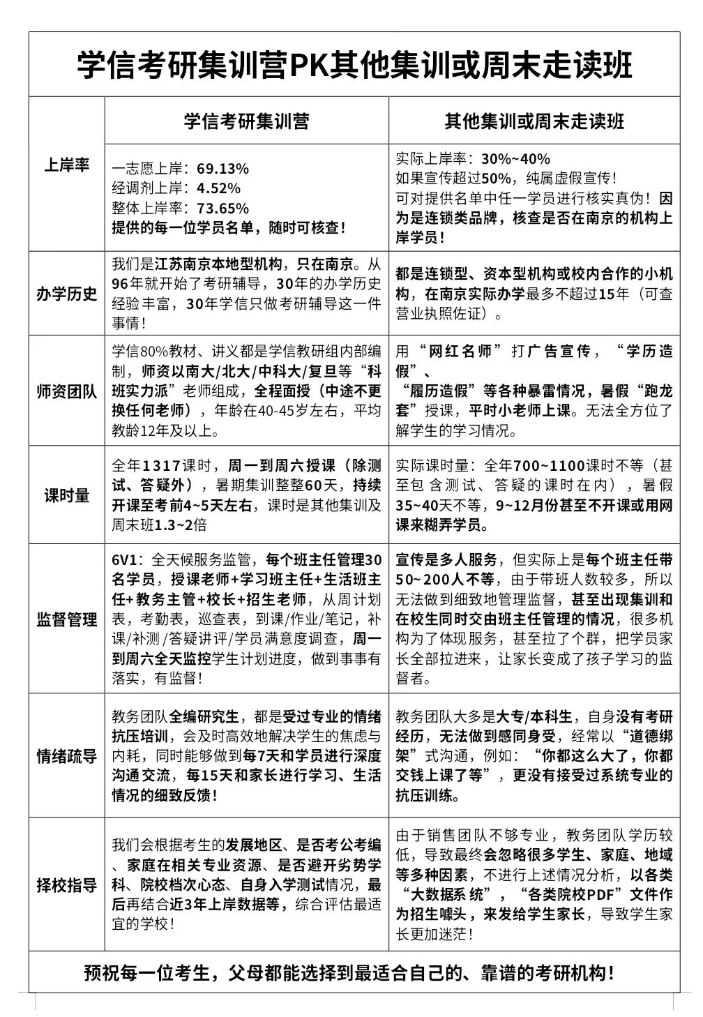 南京学信考研具有28年办学历史,是江苏最悠久的考研辅导学校之一,更懂教学、管理与提分。目前,通过“口碑推荐”方式报班的学员,已占学信学员总数的 70%。