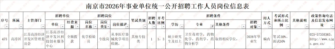 全额事业编药学岗位,南京市2026年事业单位统一公开招聘工作人员公告.