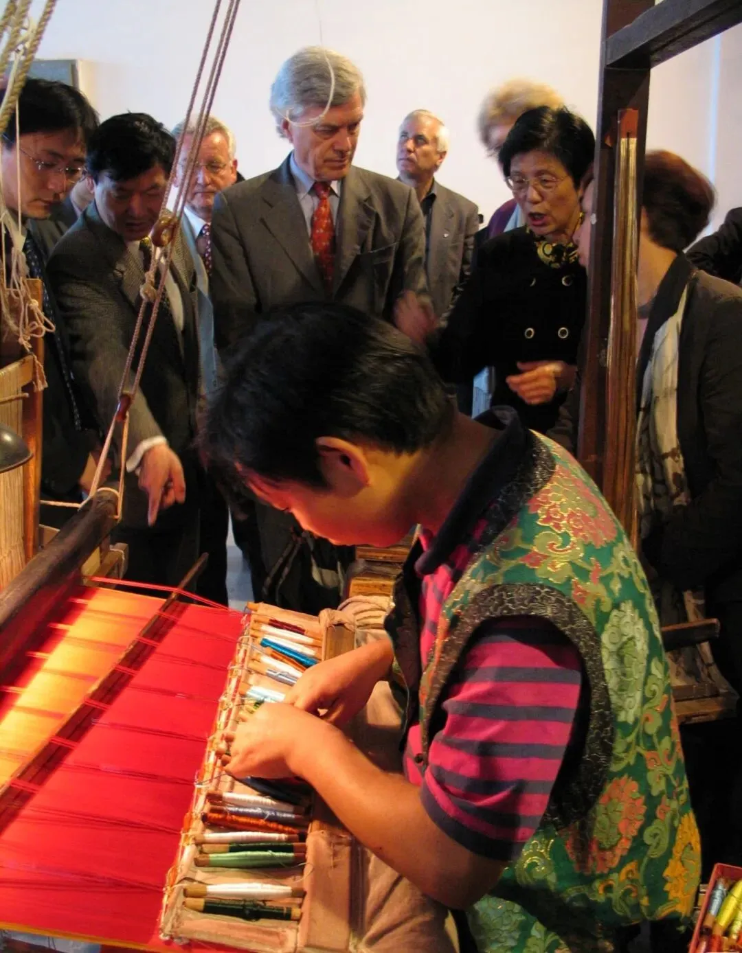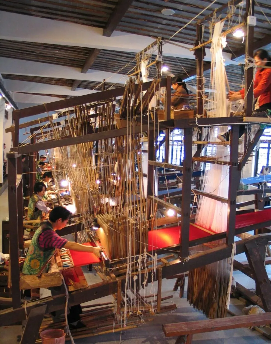 云锦的珍贵,藏在它“通经断纬”的绝技里。在高达5米的大花楼木织机上,拽花工与织手上下配合,一天仅能织出5-6厘米锦缎,真正诠释了“寸锦寸金”的分量。