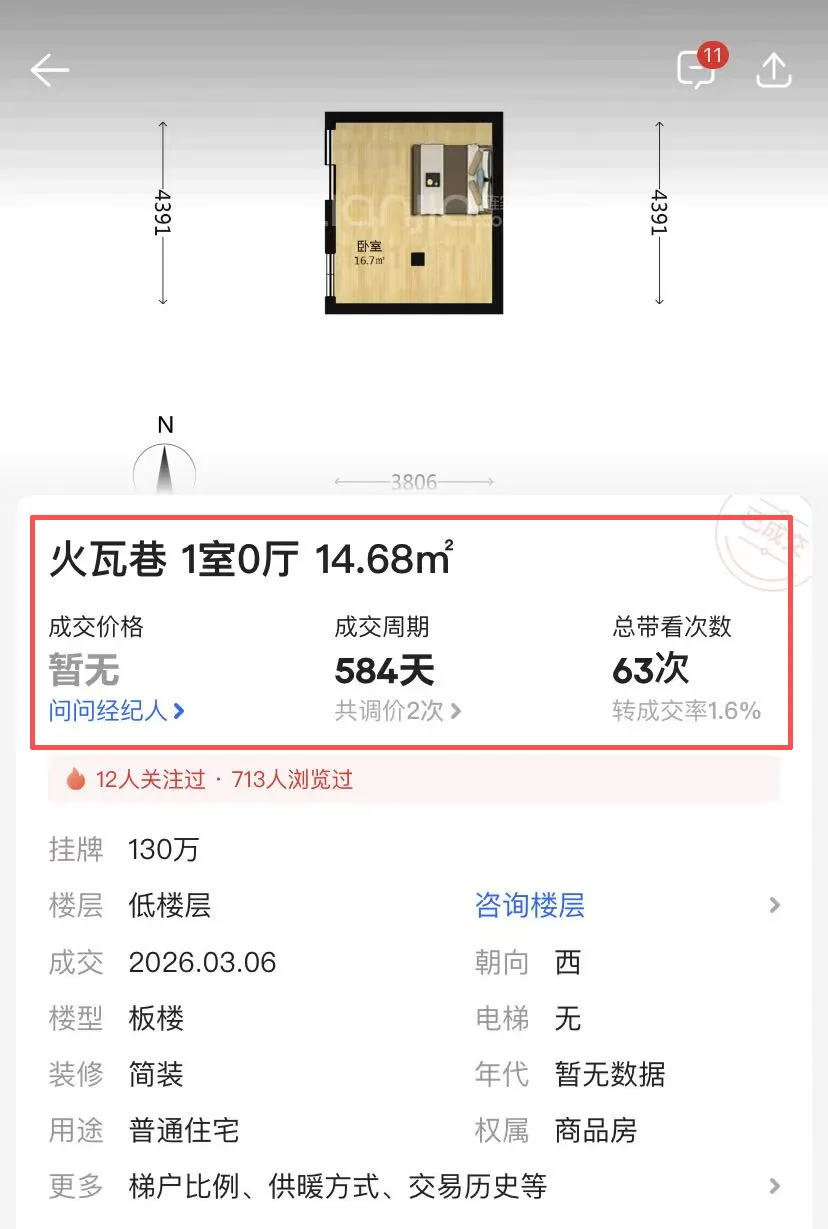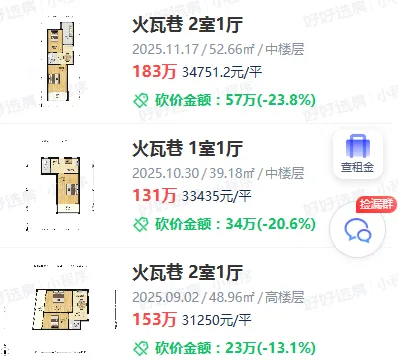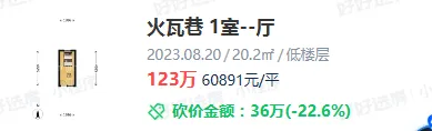 从其成交过程来看,也并不算顺利,成交周期长达584天,房东卖了一年半时间。但房源还算比较抢手,前前后后看房63次之多!业主最初挂牌价为168万,预期单价是超过10万/㎡,最终经过多次调价112万成交!一是和去年底该小区成交房源比,只看单价的话,甚至翻了一番不止;二是和同样差不多的小户型相比,火瓦巷上一套单室套小户型,还是2023年8月成交,面积20.2㎡,总价123万,成交单价60891元/㎡。第一,火瓦巷小学(游府西街分校)+钟英中学的优质学区。虽然这两年南京学区房价格不及早些年那么疯狂,价格也大大回落,但这种优质学区房依然拥有十足的含金量,在鸡娃的家长们眼里是买一少一的“限量款”。