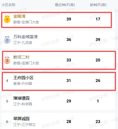 这是过去90天,南京二手房小区成交量的榜单,排在前几位的基本都是优质学区房小区。