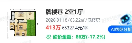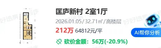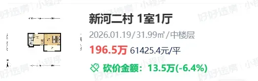 第二,面积小总价低。这套房源是少有的小户型,所以单价虽然高,但总价依然可控,100万出头买优质学区很多家长也能接受,而且看户型,这套房源并不是那种完全无法住的。