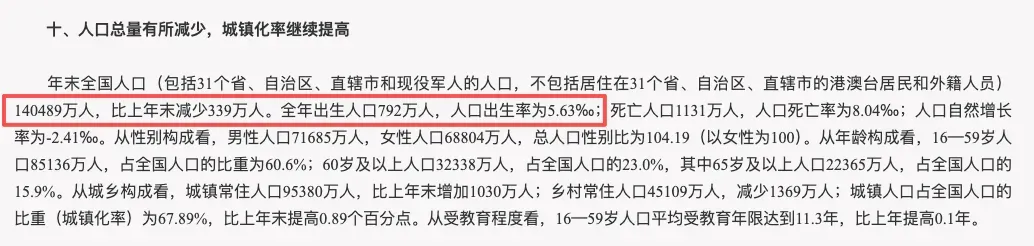 根据国家统计局数据,2025年全国出生人口792万人,比去年少了162万;总人口140489万人,比去年少了339万人。