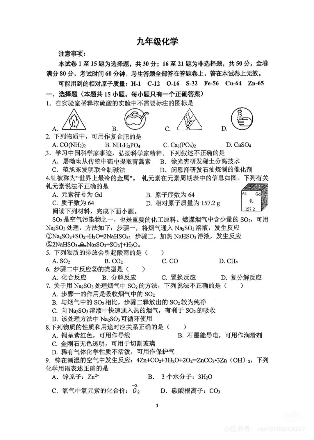 【图片】25-26学年3月23日南京一中集团【求真+明发滨江】中考零模化学卷【学生】.pdf