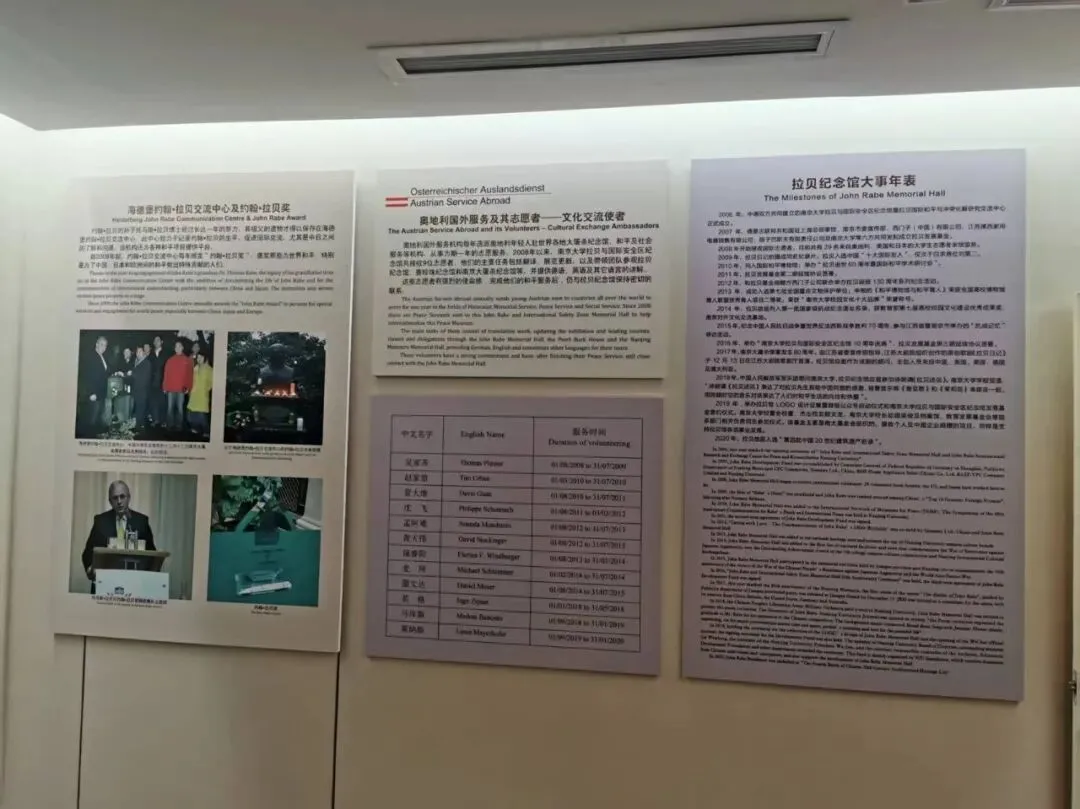 1937年,日军进攻南京前夕,约翰·拉贝和十几位外国传教士、教授、医生、商人等共同发起建立南京安全区,并担任安全区国际委员会主席,不顾危险、奋不顾身地抗议和尽其所能地阻止侵华日军对中国人民施暴。安全区为大约25万中国平民提供了暂时栖身避难的场所。