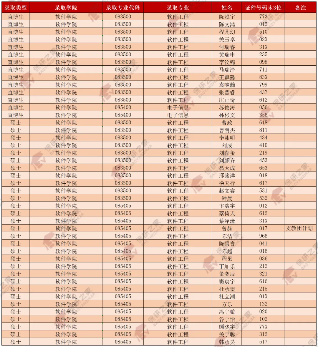 南京大学软件学院2026级拟录取推免生包括硕士和直博,共有2个专业:电子信息、软件工程。