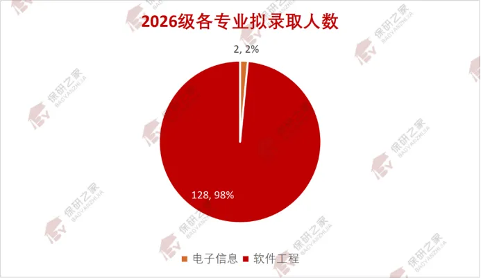 ¤ 软件工程专业招生人数最多,共招收128人,占比高达98%;