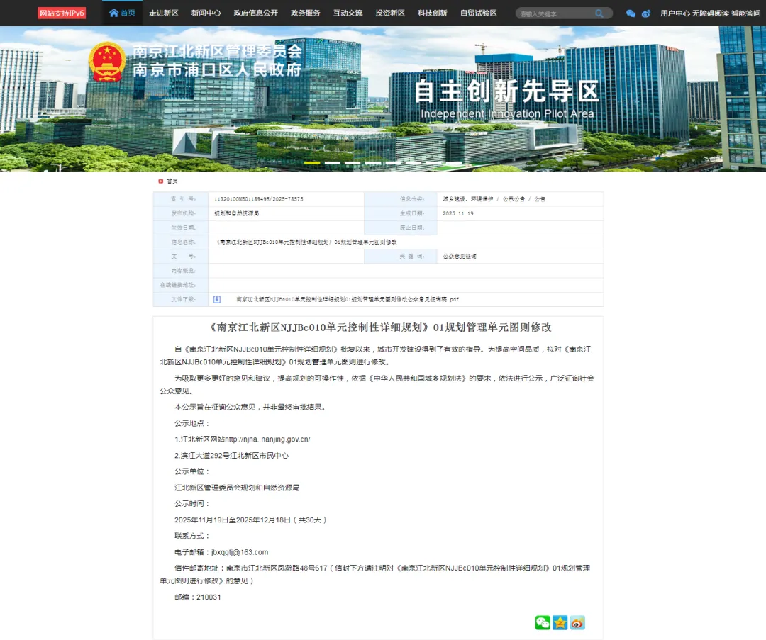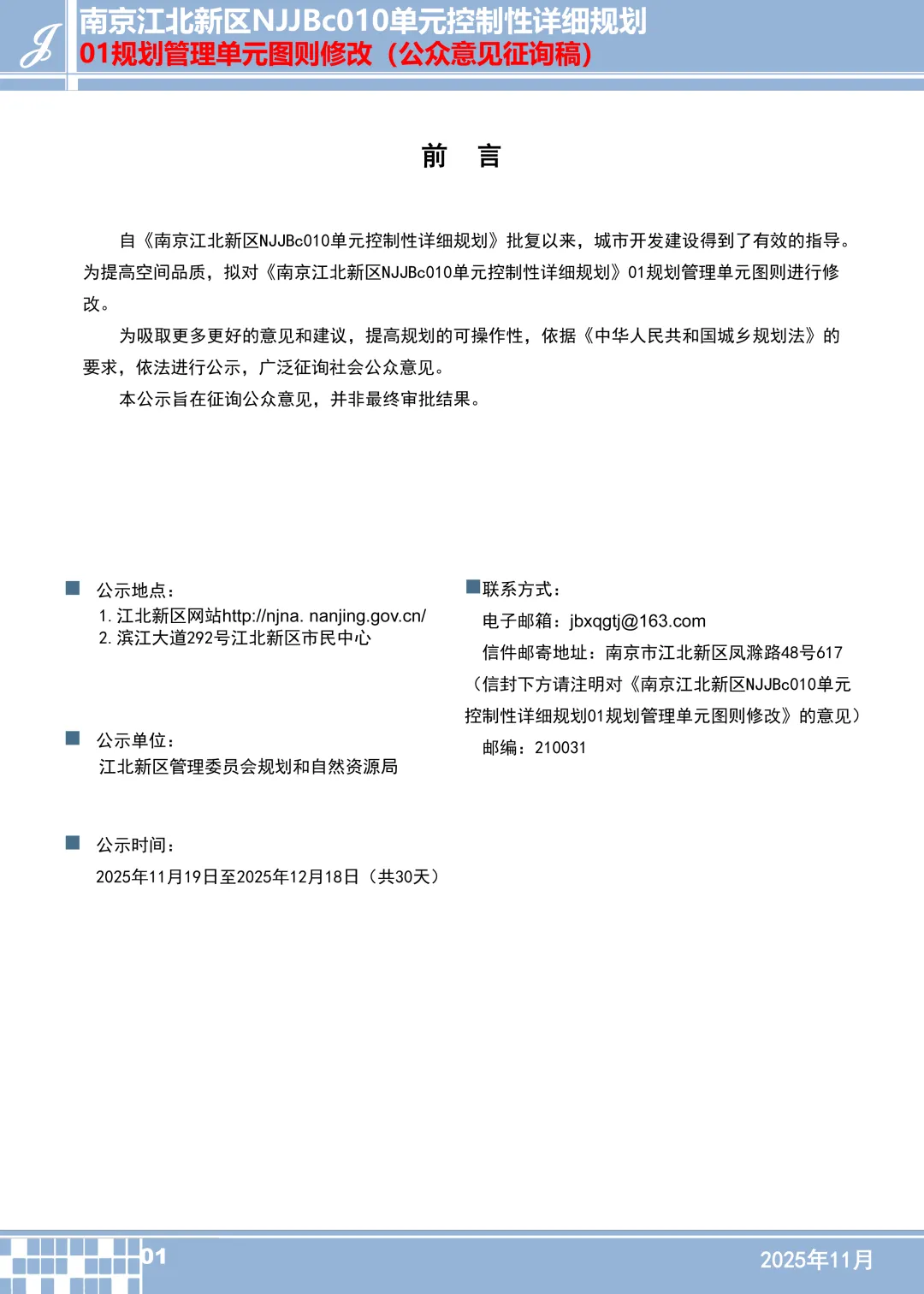 《南京江北新区NJJBc010单元控制性详细规划》01规划管理单元图则修改