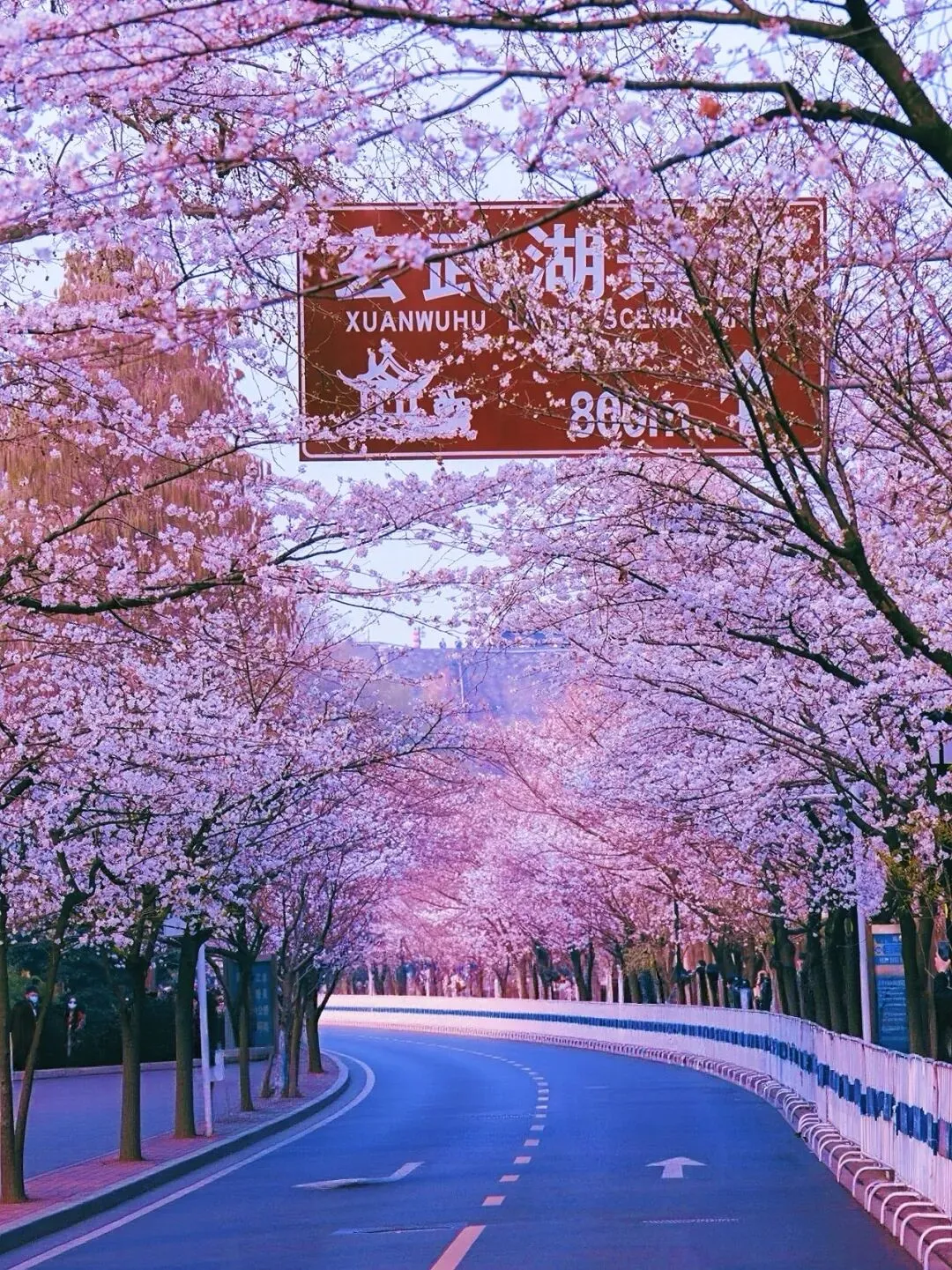 南京赏樱,首推鸡鸣寺樱花大道,堪称金陵春日顶流。短短数百米,粉白樱花交织成花廊,搭配古寺黄墙飞檐,古风氛围感拉满,不用进寺就能免费拍大片。