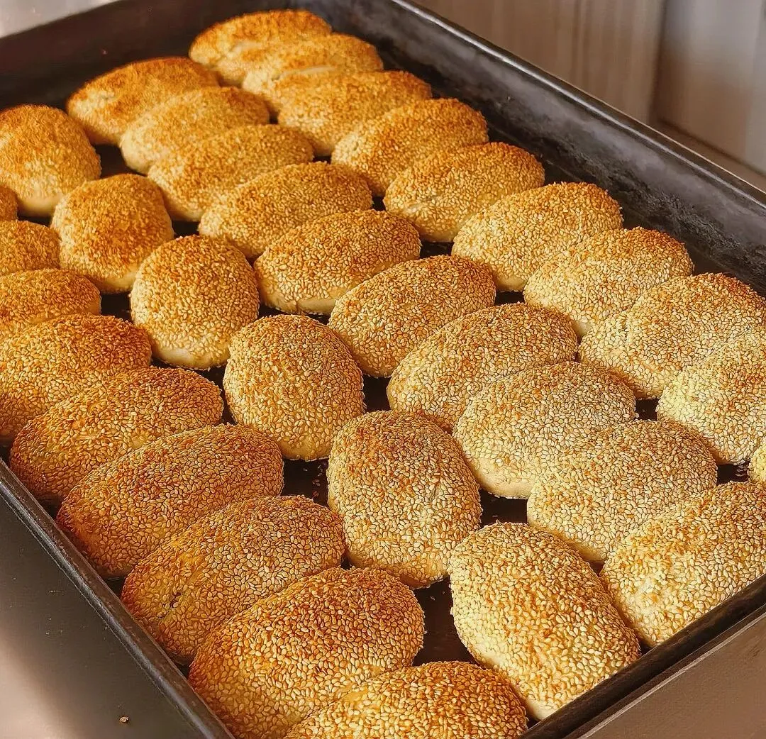 外皮酥脆,内里松软,咸香适口,甜口烧饼裹着芝麻糖香,刚出炉最好吃。