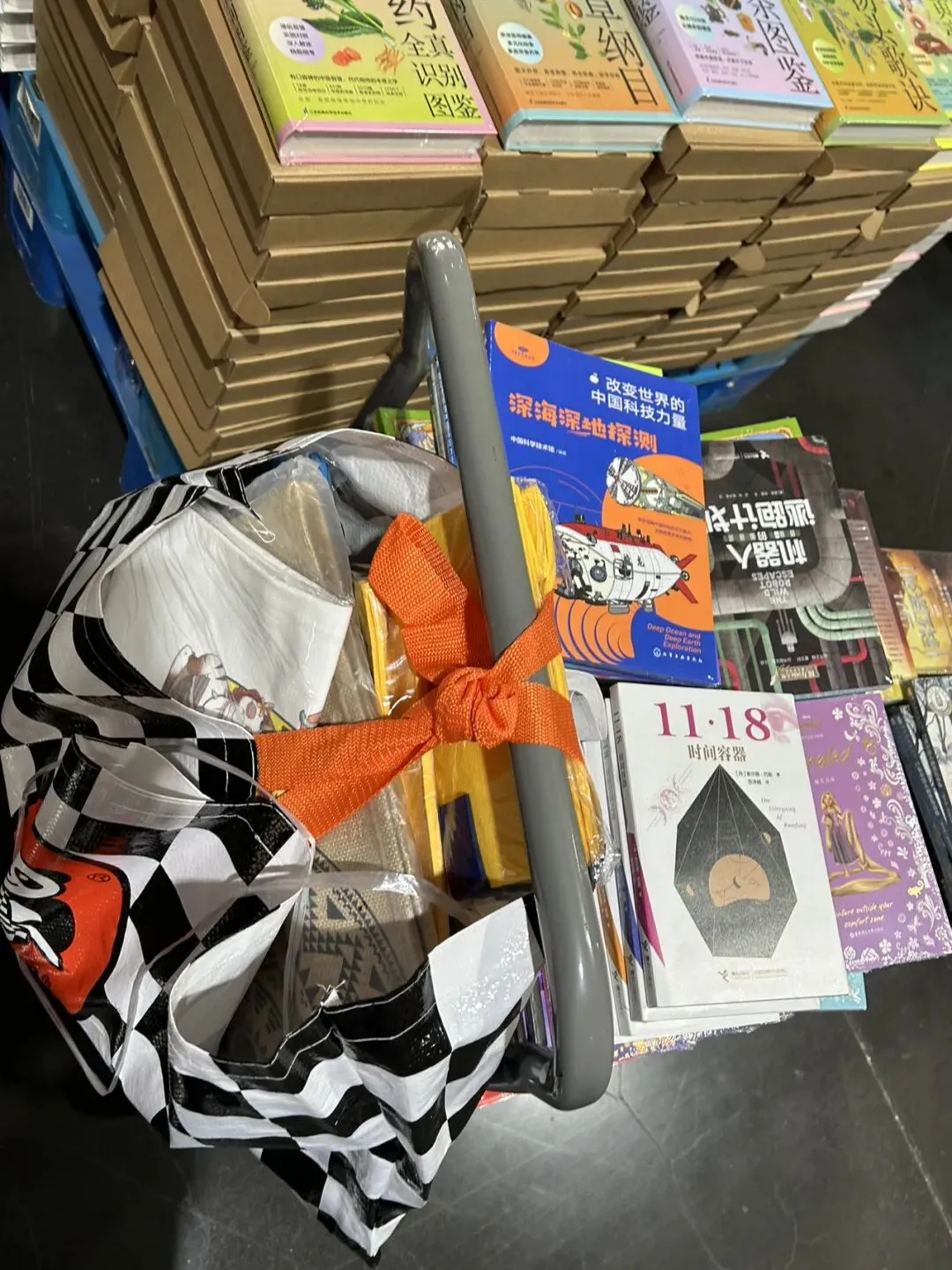 这家书卖得是不是最多目前不得而知,但至少人家给的的袋子最大。那些挎着“显眼包”的采购者,完全成了人家的活动广告。
