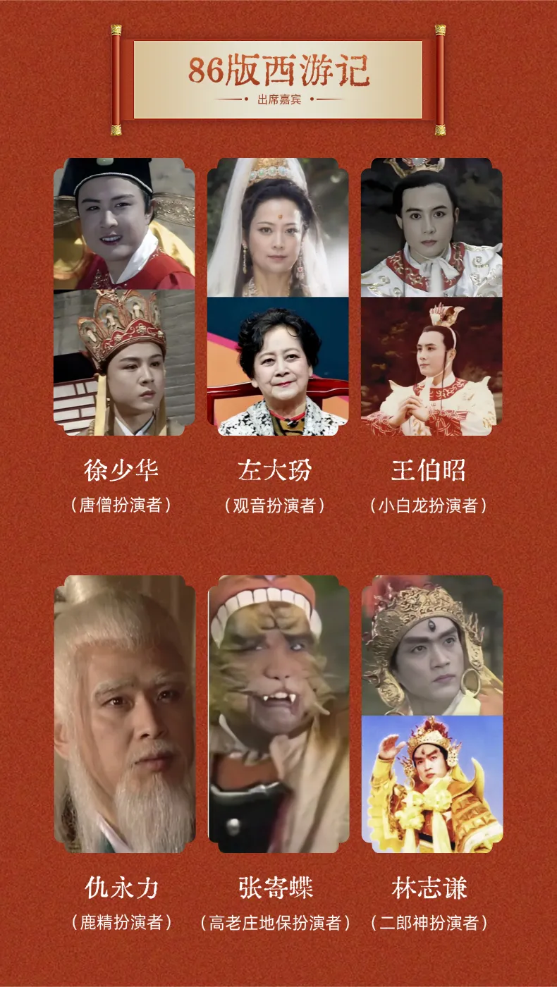 徐少华(唐僧)、左大玢(观音)、王伯昭(小白龙)等老艺术家将亲临现场,与观众互动交流、合影留念,还原经典名场面,唤醒刻在DNA里的西游情怀。