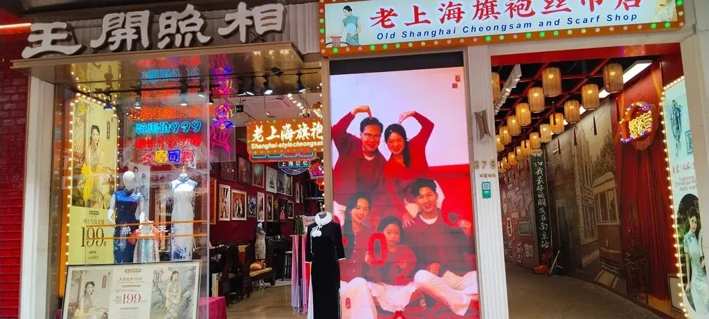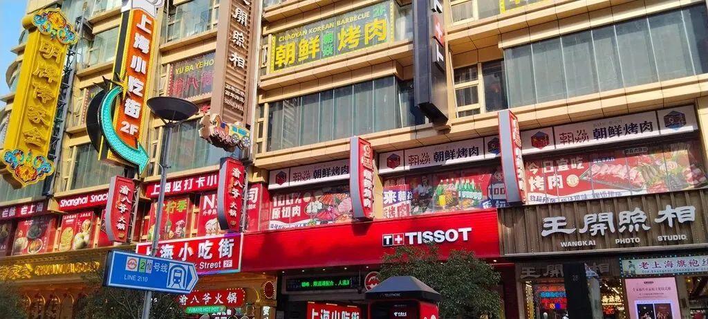 宏伊国际广场(南京东路店)南京东路299号。 当46只鲜红中国结挂满南京路东拓段的路灯杆,当老字号的醇香与新兴品牌的潮味在街头交织,当“绮马遇禧”的市集烟火升腾,2026马年新春的魔都,便在这条“中华商业第一街”上,铺展开最动人的画卷。这段时间,我先后前往五六次,用镜头定格下街景的每一处美好,累计摄影近千张照片,每一张都藏着南京路的新春暖意与新旧风情。 南京东路河南中路入口向西眺望北侧百年老店名号:王开照相馆、明牌传家金、老凤祥银楼、老庙黄金银楼、邵万生、朵云轩、蔡同德、三阳南货店、沈大成食品、冠生园食品……等50余家老字号品牌商家。 百年(创始于1921年)的王开照相馆,位于南京东路378号,与地铁2号、10号线南京东路站1号口(南京东路380号)相邻。王开照相馆简介
