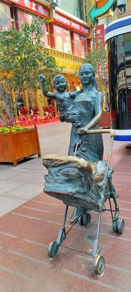 • 寓意:展现了上海女性独立、优雅的形象,也呼应了南京路 “逛吃逛买” 的商业氛围,是都市母亲日常状态的艺术定格。