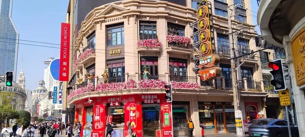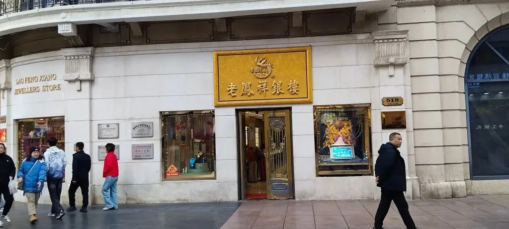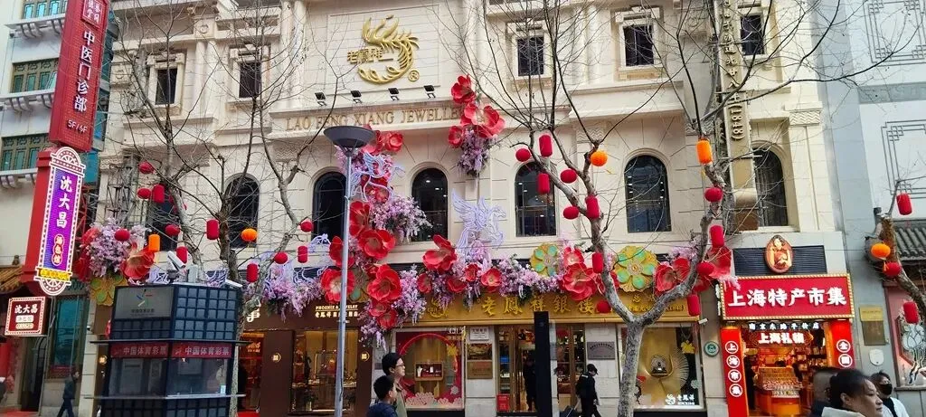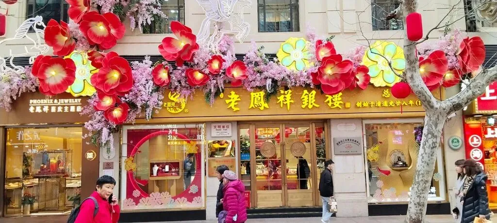老凤祥始于1848年,1908年迁驻南京东路后便深耕至今,凭成色足、工艺精的口碑立世,百年非遗技艺与现代设计碰撞,让老品牌焕发新活力,成为市民游客选购新春首饰的首选之地。(上图:老凤祥银楼,位于南京路步行街 南京东路462号)