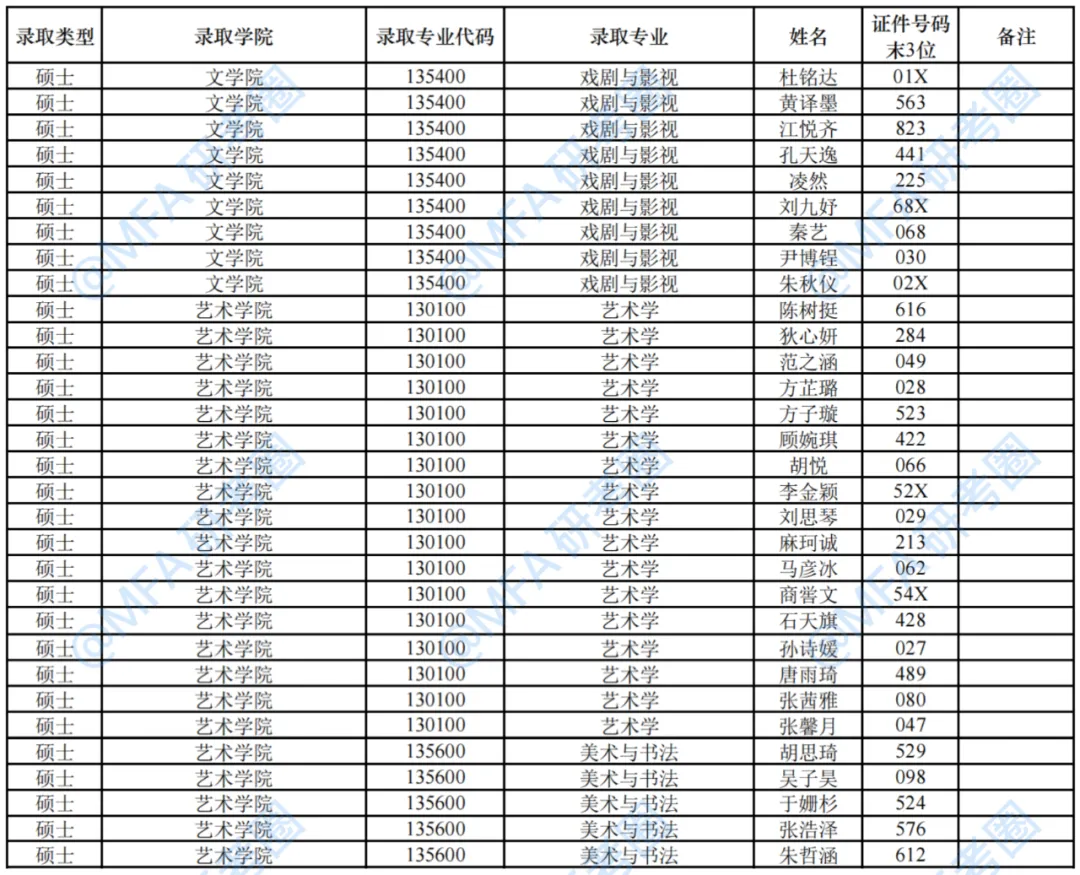 南京大学2026年文学院、艺术学院135400戏剧与影视、130100艺术学、135600美术与书法等专业推免保研录取名单。