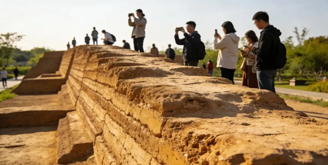 这里没有光鲜亮丽的仿古街,而是实实在在的生活老街。最让人震撼的,是那几段残存的春秋夯土墙。历经两千五百多年风雨,土墙依然屹立,层层黏土和碎陶片清晰可见,就像一本翻开的历史书。