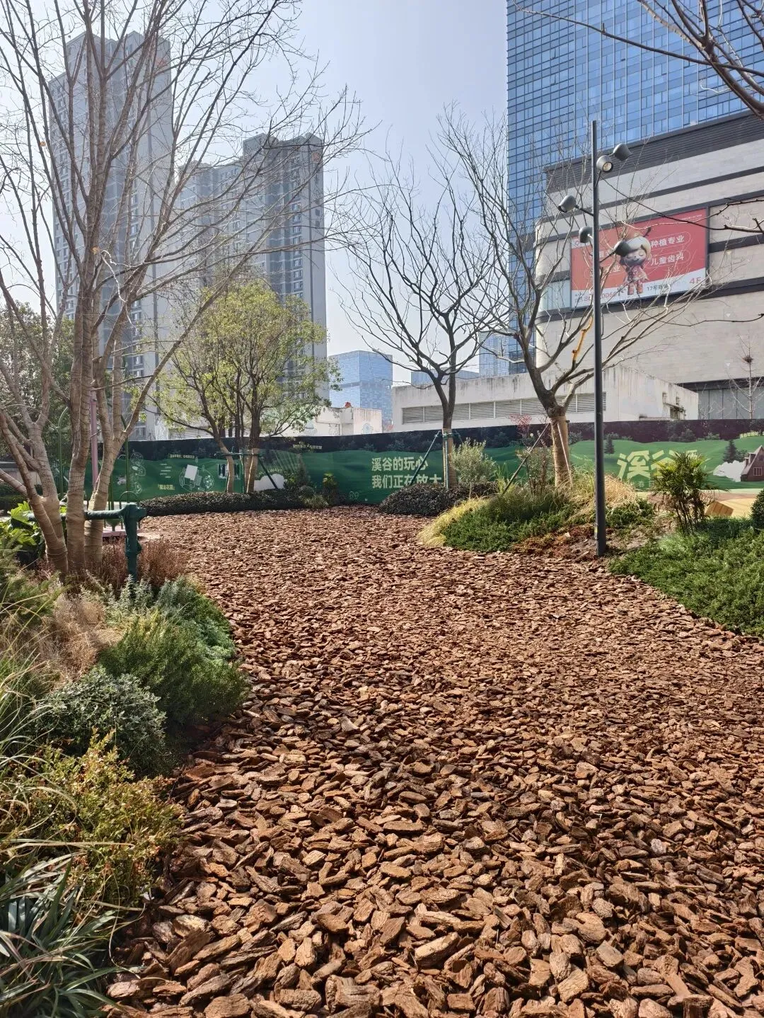 地面全域采用环保松树皮精心铺设,触感柔软、自然透气,在保障儿童游玩安全的同时,还原出浓郁的自然野趣氛围,让孩子们仿佛置身林间旷野,沉浸式感受自然与游乐相融的美好体验。