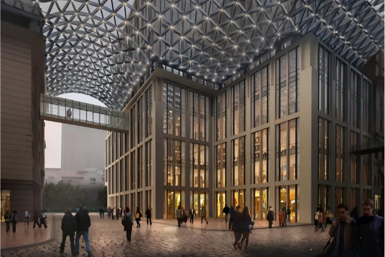 屹立上海南京路步行街旁,百年历史建筑新康大楼,于城市之心焕新呈现。项目集精品商业与总部办公于一体。1921年由新康洋行兴建,经保护性修缮后,以新古典主义之姿重现荣耀。内部设施全面升级,配备199个停车位,奢适层高彰显非凡气度。作为不可复制的恒产,既是实力企业总部的身份名片,亦是抢占特级地段保值增值的绝佳机遇。