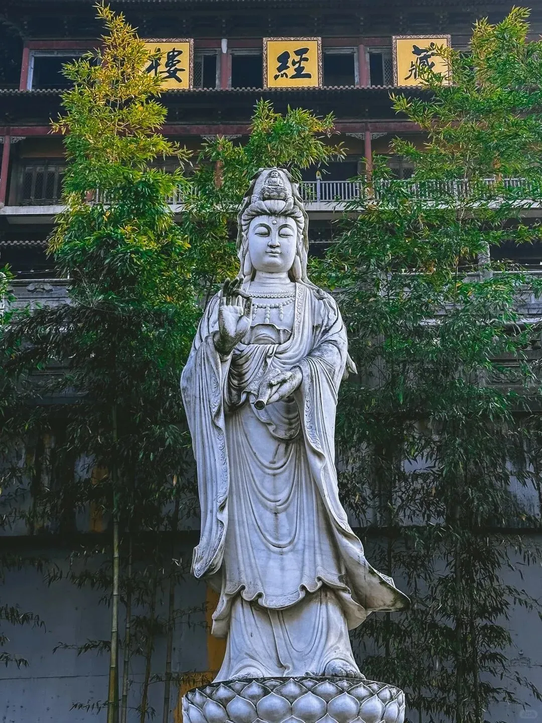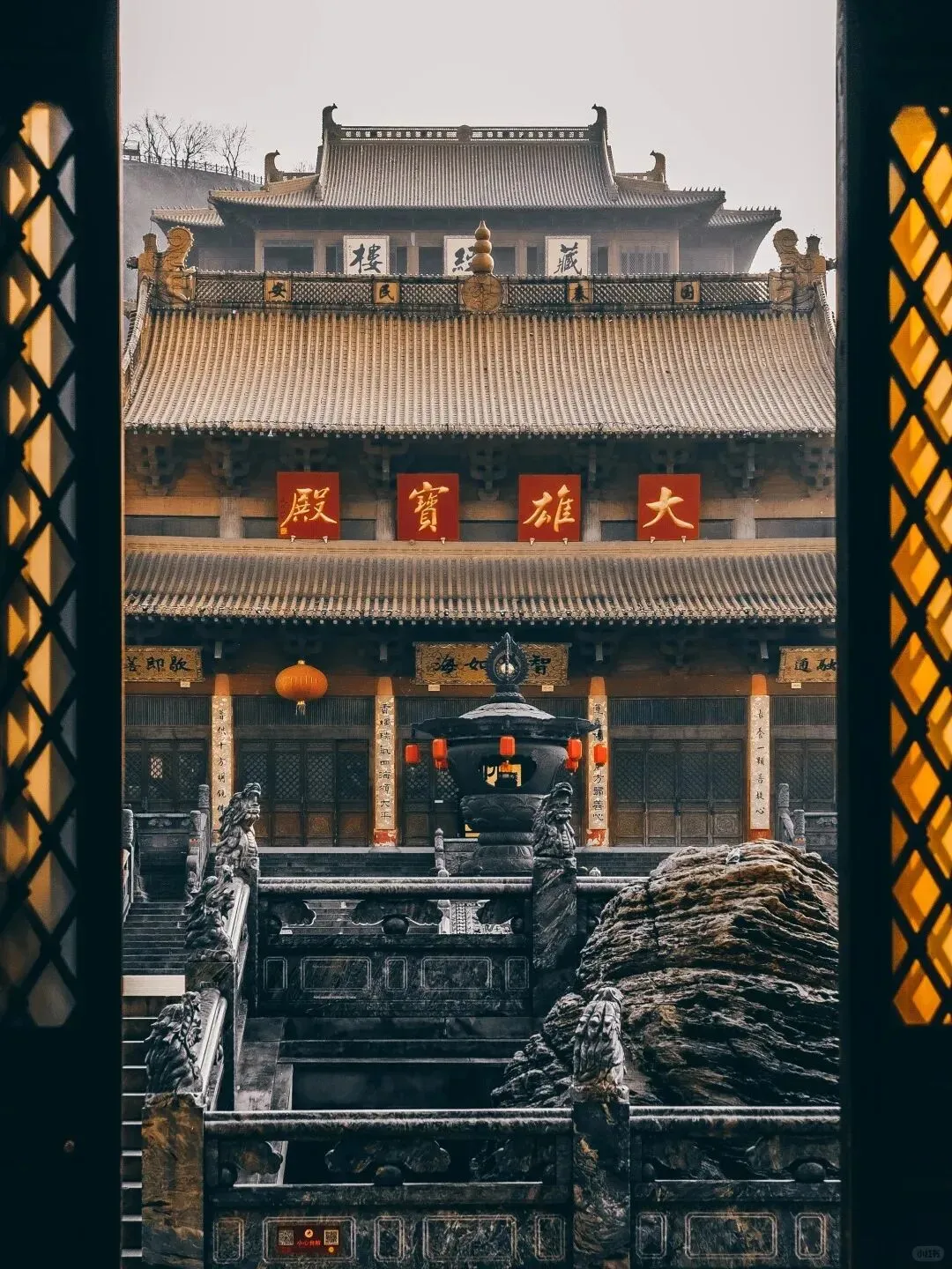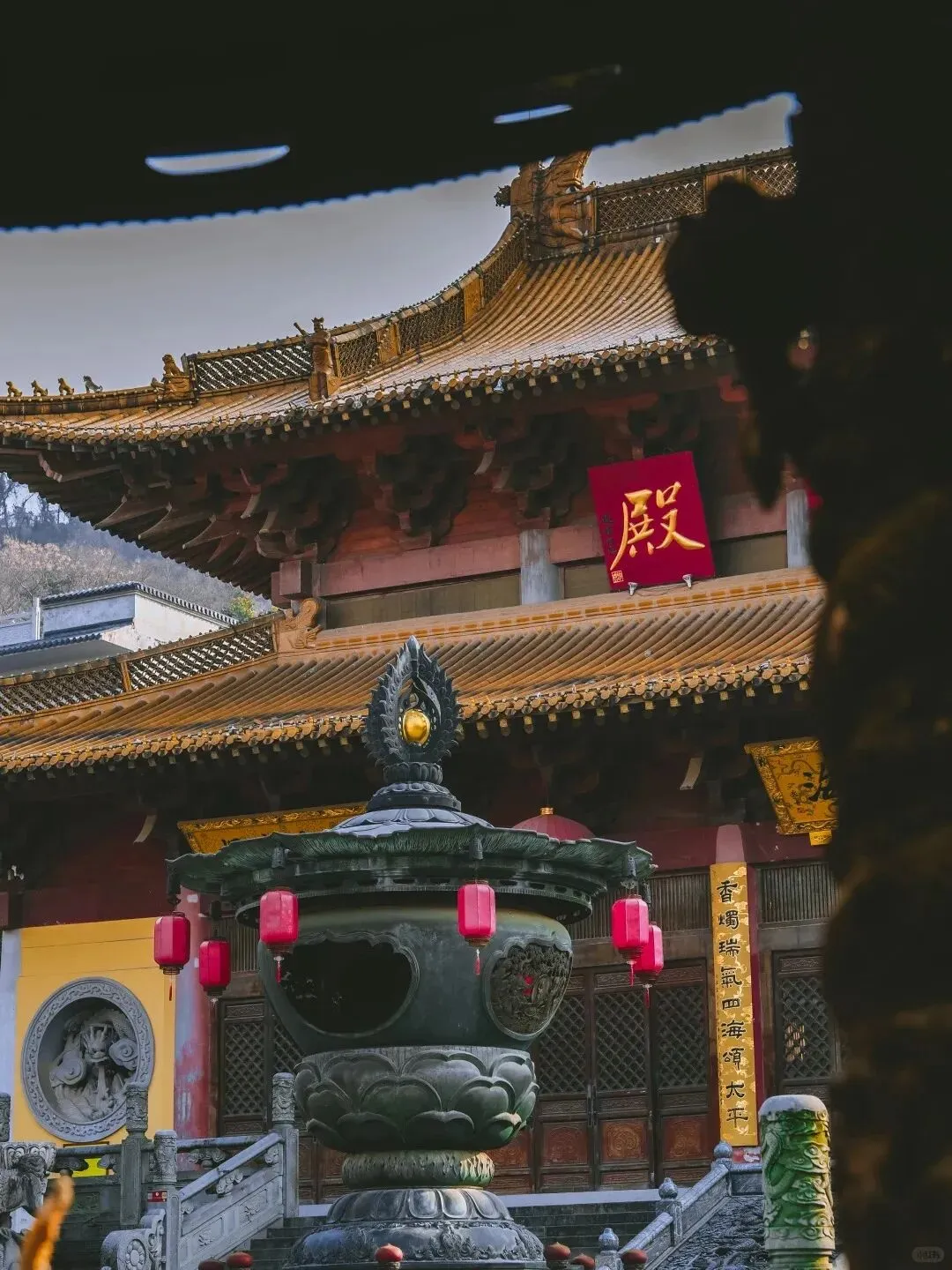 如今的定林寺为2003年复建,沿袭古制坐南朝北,与钟山上定林寺遥相呼应。大雄宝殿、天王殿等建筑红墙黛瓦,庄严肃穆。寺内保留着“轮藏”传统——南宋时义珹和尚所建的转轮藏,象征“法轮常转”,成为寺院独特的文化符号。每年春日,寺周古木新绿与斜塔相映,吸引无数游人前来寻访历史、祈福静心。