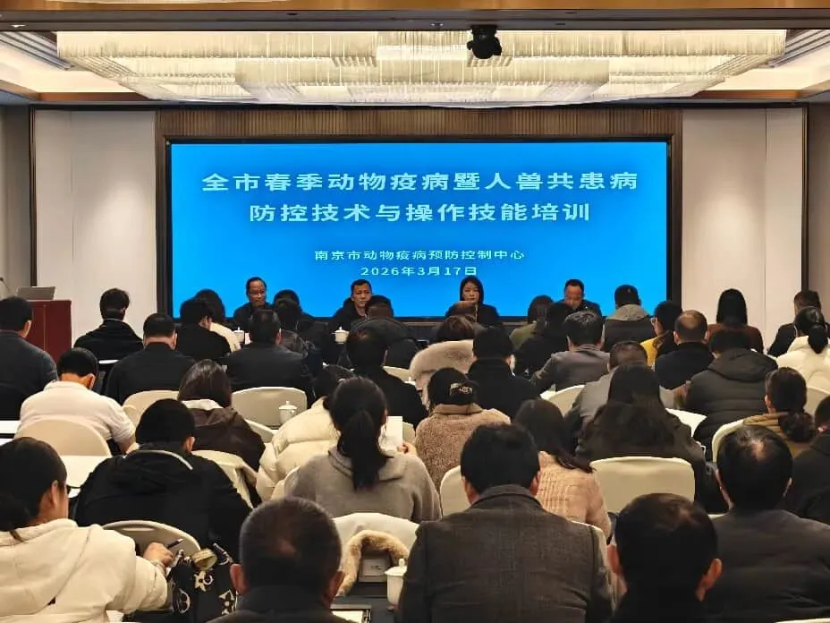 为紧抓重点时节打好春季动物疫病及人兽共患病防控“阻击战”,进一步提升基层业务水平与专业技能,保障畜牧业高质量发展,维护公共卫生安全,近日,南京市畜牧兽医站在江北新区成功举办了2026年全市春季动物疫病暨人兽共患病防控技术培训,来自全市各级动物防疫机构主要负责人、业务骨干等110人齐聚一堂,以学践知、以训提能。