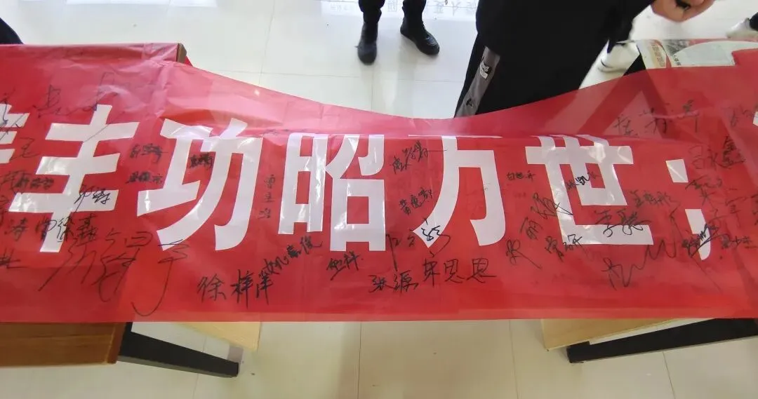 上午八时十五分,于网络工程学院大厅举行悼念横幅签字仪式,同学们纷纷参与签字仪式,以悼念南京大屠杀中的死难者和所有在日本帝国主义侵华战争期间惨遭日本侵略者杀戮的所有死难同胞。