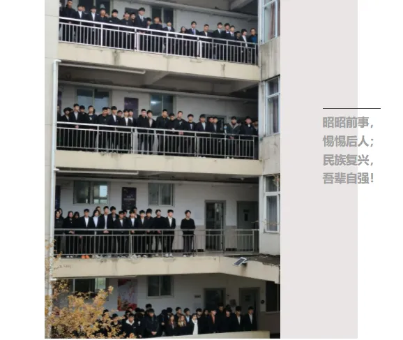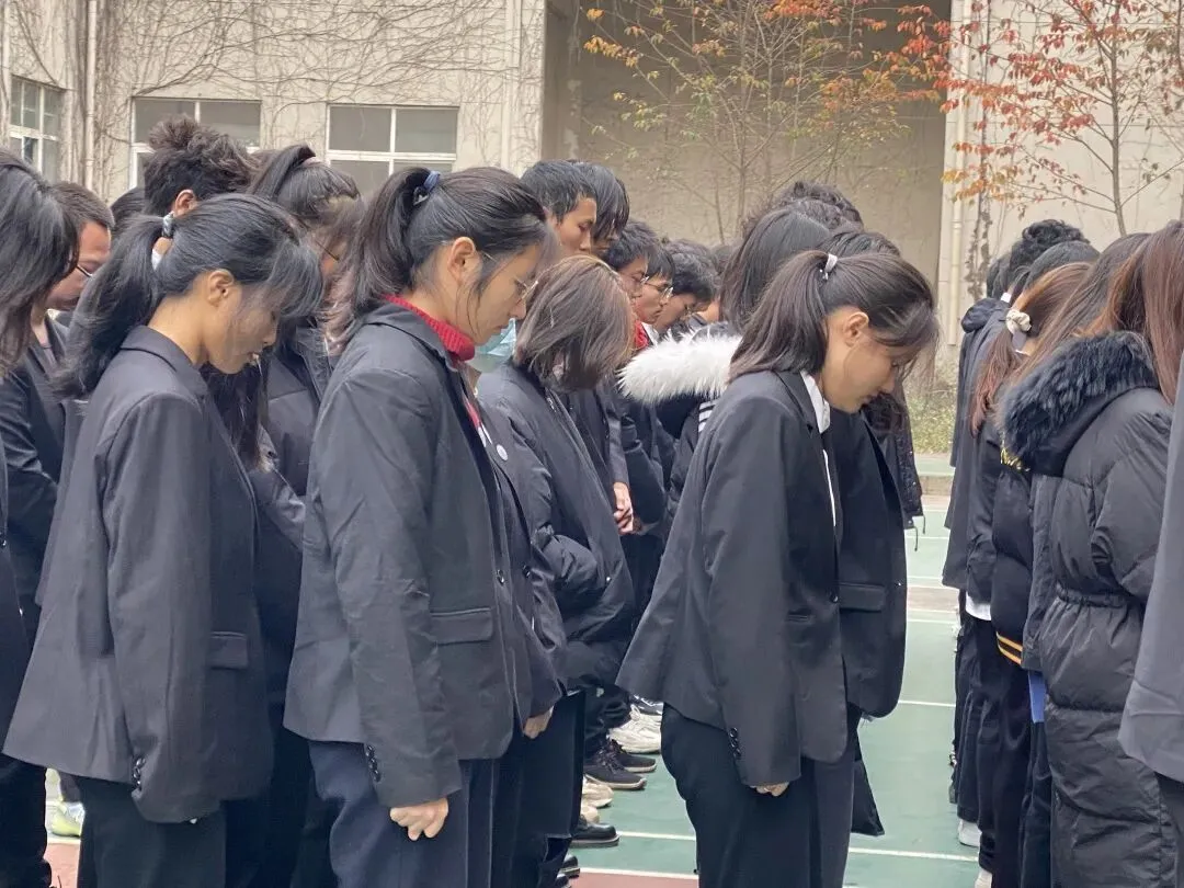 十时十分,网络工程学院学生会全体成员于学院羽毛球场、各班级学生于学院走廊肃立,他们身着素装,佩戴校徽,在庄严肃穆的气氛下,同学们纷纷为死难者同胞默哀致意。