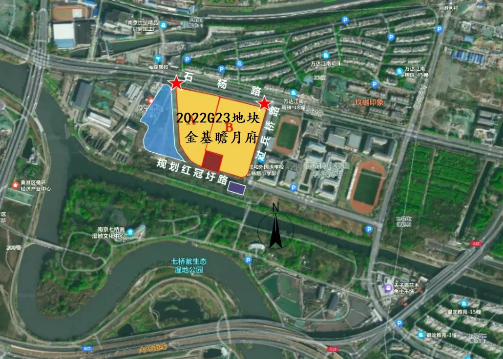 NO.2022G23地块为秦淮区光华路街道石杨路以南、过兵桥路以西地块。东至过兵桥路,南至规划红冠圩路,西至规划红冠圩路,北至石杨路。规划用地性质为R21住宅用地、Aa居住社区中心,出让面积62595.04㎡,综合容积率1.76,建筑高度≤24米。挂牌起始价161000万元,最高限价184000万元。