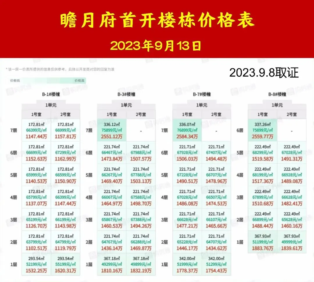 2023年9月13日,项目首开4栋楼,12套172m²;26套222m²;8套底跃293-368m²。最高总价,7号楼顶楼退台大平层,2584.34万!