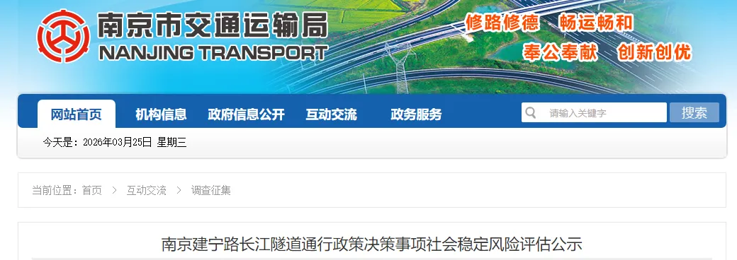 刚刚,南京建宁路长江隧道通行政策开展社会稳定风险评估公示并征询公众的意见和建议。