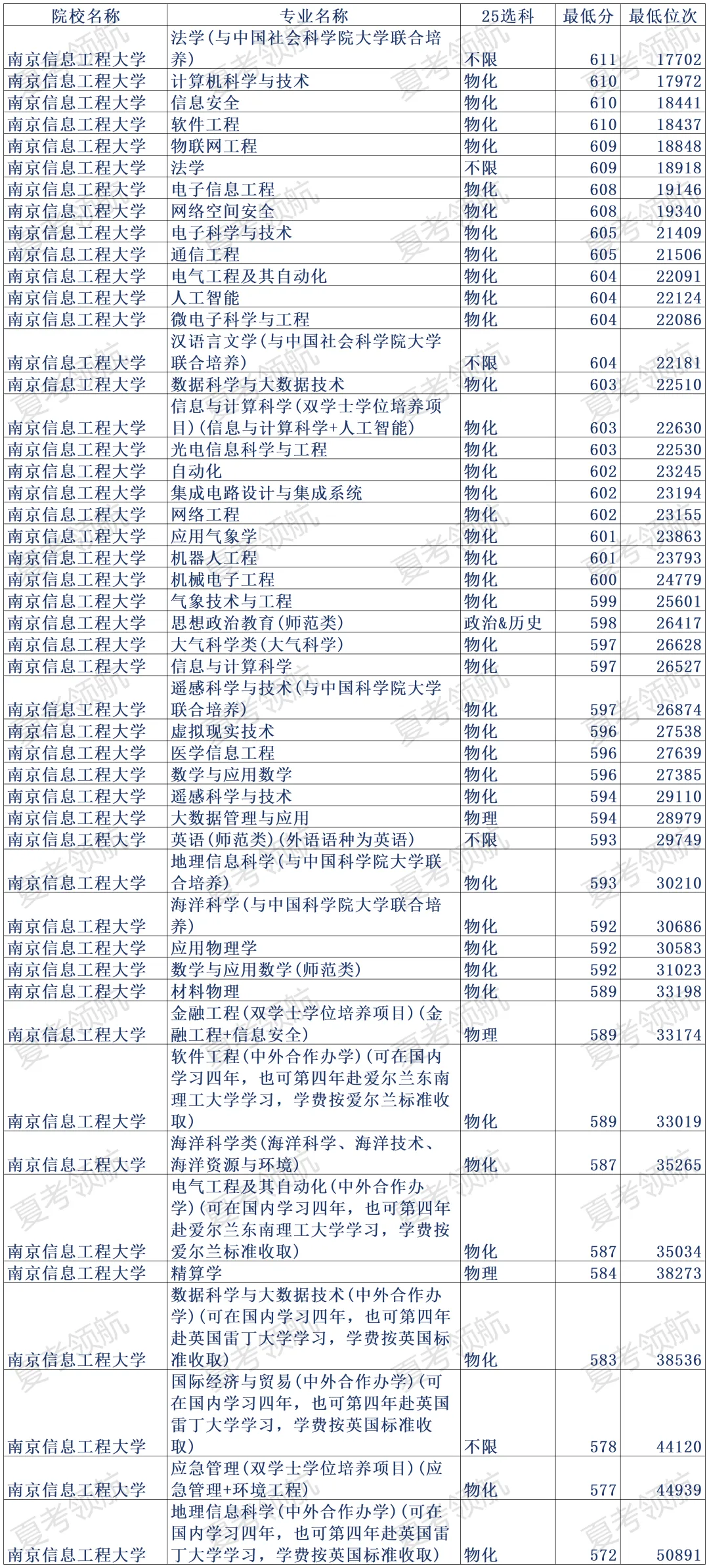 2025年南京信息工程大学在山东普通类常规批共录取48个专业,分数区间577-611分。