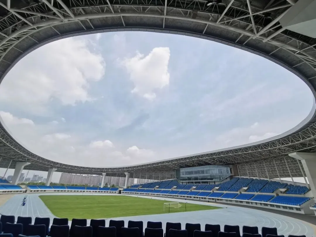 南京青奥体育公园专业足球场改建工程位于江北新区青奥体育公园,总建筑面积约6.74万平方米。场馆秉持 “内涵式提升” 理念,保留原有建筑外轮廓与屋盖基础上实施改造,升级为南京首座4.5万座专业足球场,预计2027年启用。
